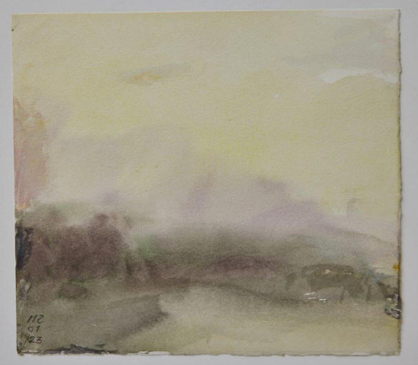 M 62, Regen im grossen Moos, 2001/23, Aquarell, 18.2/20.4 cm