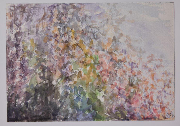M 38, Büsche im Herbst, 2023, Aquarell/Gouache, 25.4/30.9 cm